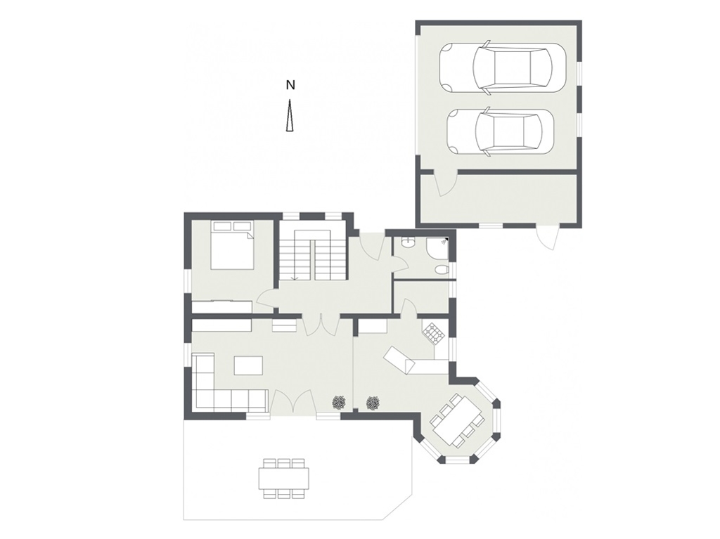 Eine Doppelgarage sowie eine wunderschöne private Terrasse laden zum vollen Genuss der ruhigen und sonnigen Lage ein. Die durchdachte Außenbeleuchtung im Garten verleiht dem Anwesen auch abends eine stimmungsvolle Note und hebt die liebevoll gestalteten Details hervor.