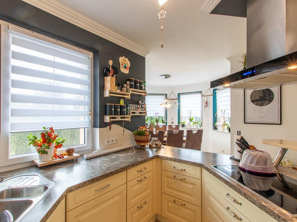 Die helle und einladende Essecke ist der perfekte Ort für gesellige Essen und Gespräche mit Familie und Freunden. Für vollen Komfort und das jeden Tag sorgen elektrische Rollläden sowie das elektrische Einfahrtstor.