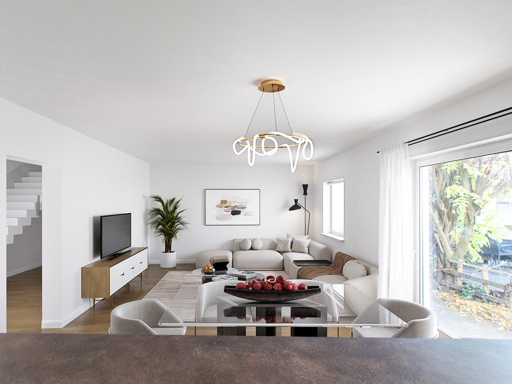 Im Erdgeschoss lädt Sie ein großes Wohn-/Esszimmer mit einer schönen Kochinsel und einer modernen hochwertigen Küche ein, Ihren Alltag zu genießen. Über das große Wohnzimmer kommen Sie in den pflegeleichten Garten der zu Grillabenden mit Freunden und Familie einlädt.
