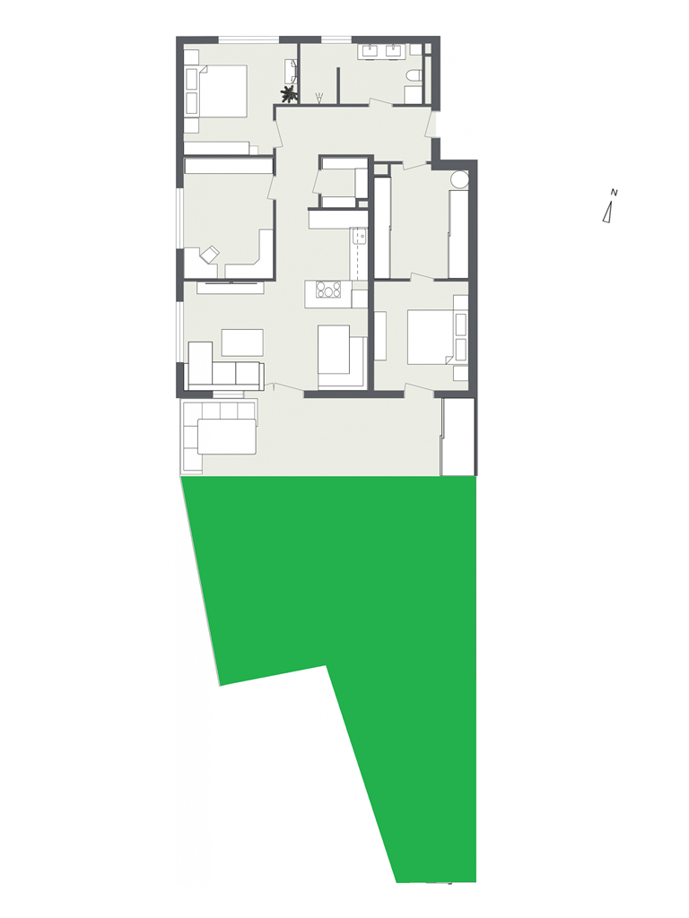 Das moderne Badezimmer begeistert mit einer breiten Walk-In-Dusche samt beheizter Sitzbank, einem Doppelwaschbecken und ausgesuchten Materialien – ein Ort zur täglichen Entspannung und Einstimmung auf den Tag. Technisch überzeugt die Wohnung durch 3-fach-Verglasung, elektrische Rollläden, Fliegengitter, Lichtdimmung und Einzelraumsteuerung der Heizung – alles für ein angenehmes Wohnklima auf modernstem Niveau.