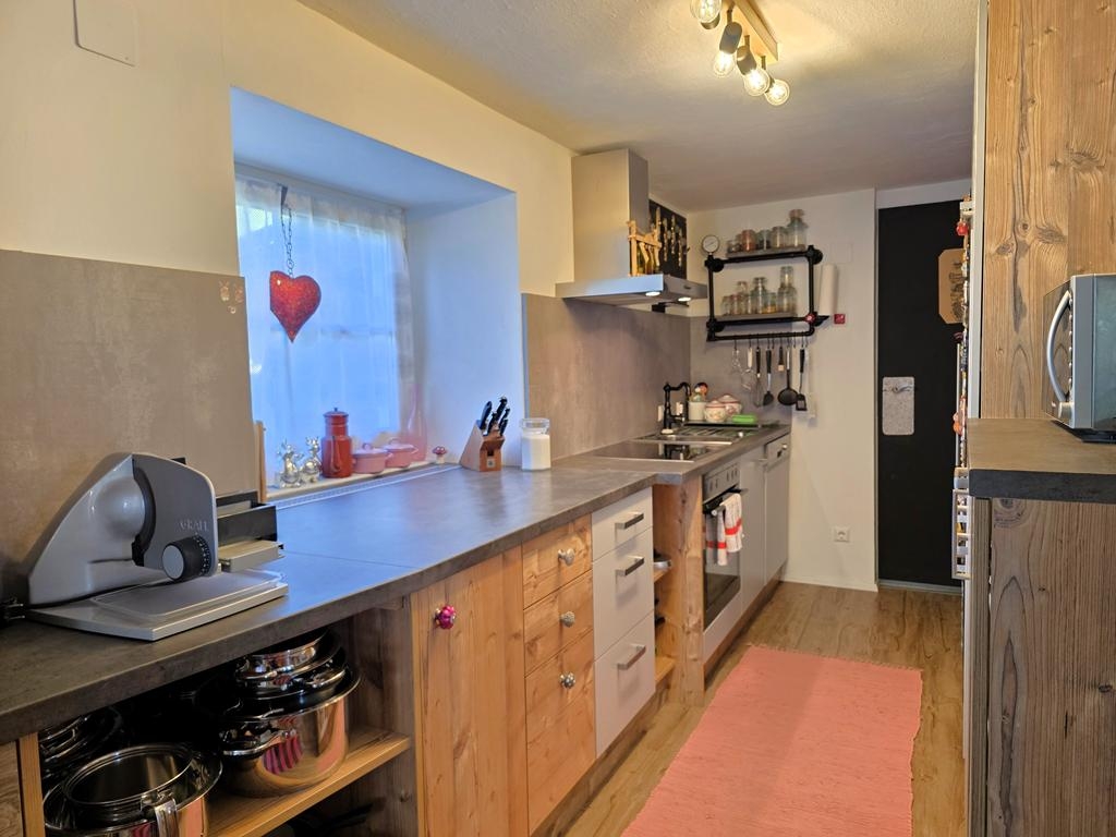 Das nach 1955 auf ein Bestand aufgebaute und liebevoll adaptierte Wohnhaus empfängt Sie mit warmer Ausstrahlung und einem besonderen Charakter. Zwei gemütliche Schlafzimmer, ein freundliches Wohnzimmer, eine einladende Küche und eine getäfelte Galerie schaffen Raum für Begegnung und Rückzug gleichermaßen. Das modern erneuerte Bad bietet den erwarteten Komfort, während eine kleine Kammer im Nebengebäude Sie in eine andere Zeit versetzt – ideal für ganz persönliche, besondere Momente.