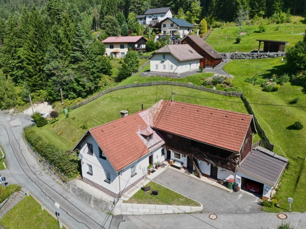 Der große Garten lädt zum Träumen, Gärtnern oder einfach zum Genießen der Stille ein. Freundliche Nachbarn und die Höhenlage von rund 900 Metern in Bad Bleiberg schenken Ihnen ein Leben in frischer Bergluft – mit der Natur als täglichem Begleiter.