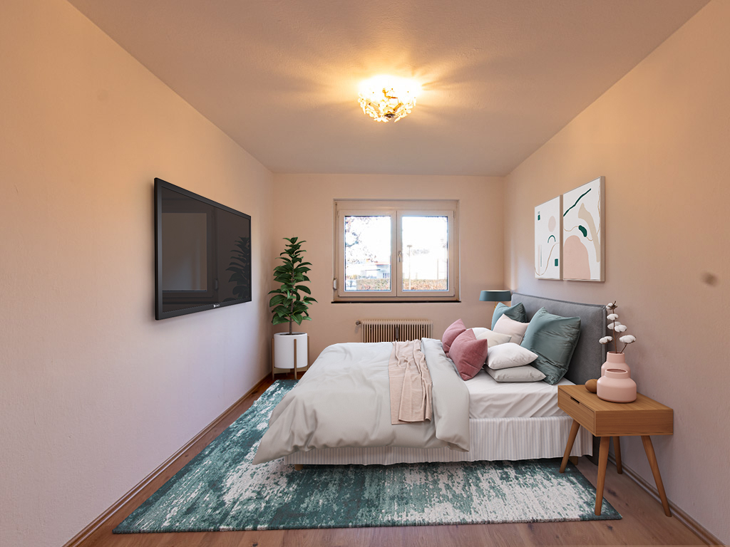 Neue Bodenbeläge, neue Fenster mit 3-fach Verglasung und Rolläden, neue Innentüren, neue Küche, neues Bad und WC ... alles wartet nur auf Sie und Ihre Einrichtung - ein paar Beispiele haben wir für Sie visualisiert.