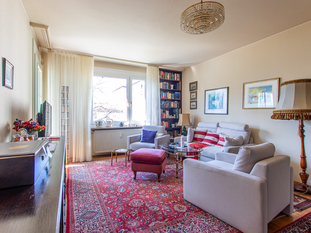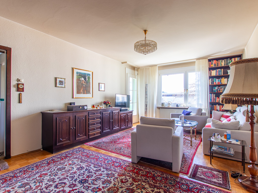 Ein großes Wohnzimmer mit Ausrichtung nach Westen und Zugang zur Loggia, bietet Ihnen angenehm Platz um Besuch zu Empfangen und die gemeinsame Zeit zu genießen.
