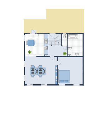 Das Erdgeschoss wurde bis vor 10 Jahren als Gastronomie genutzt. Es kann auch zu Wohnraum umgebaut werden. Es besteht aktuell aus zwei Gasträumen, der Küche und einem Lagerraum.