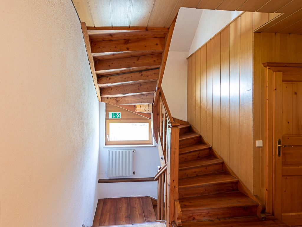 Im 2ten Obergeschoss sind 2 Garconnieren und dazwischen ein weiteres Wohnzimmer. Die Zimmer sind früher als Dienstwohnungen genutzt worden und verfügen jeweils über ein Badezimmer mit Dusche und Wc. Wohnräume sind mit Lärchenschiffboden ausgestattet.. Badezimmer sind beide komplett verfließt.