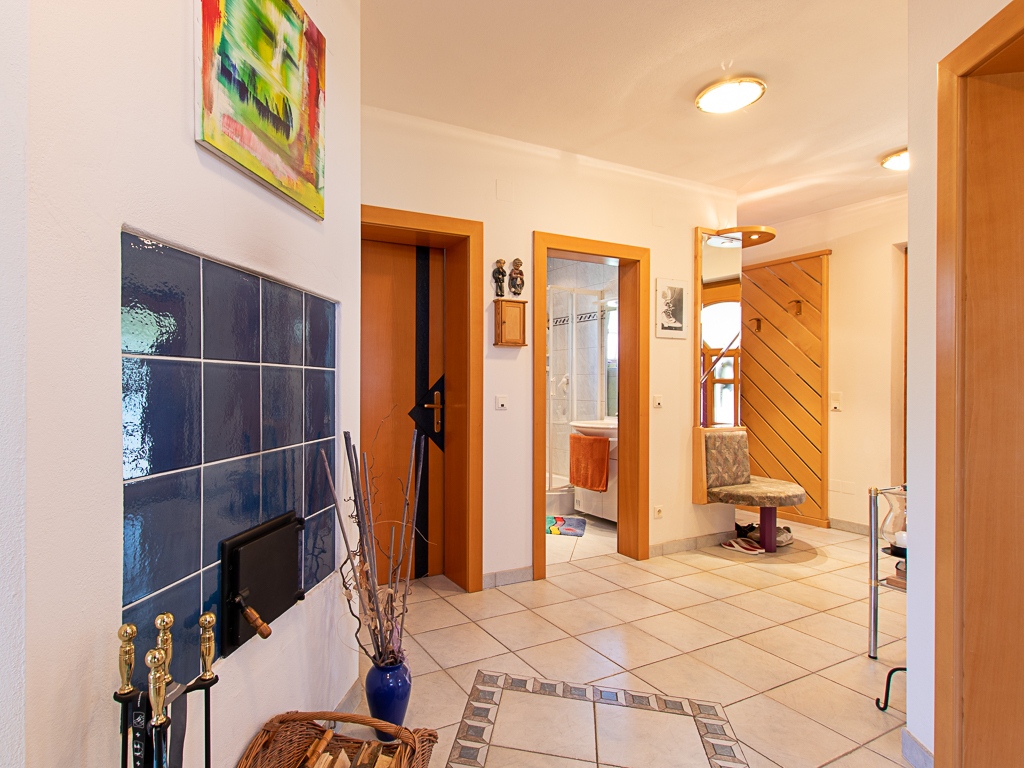 EG: Wohn-Essbereich mit Kachelofen , Badezimmer mit WC, Vorraum, Büro/Schlafzimmer