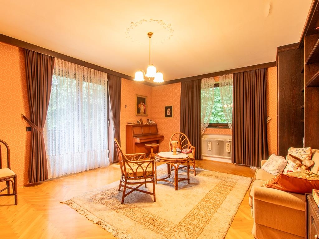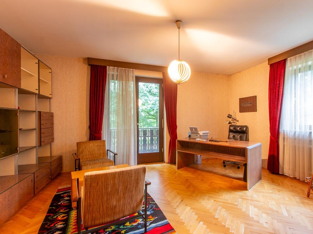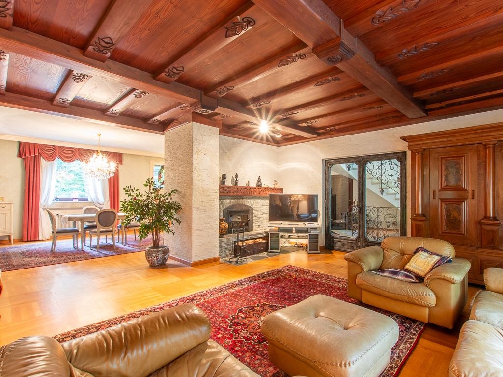 Ein weiteres Highlight der Villa ist der dekorative Kachelofen, der zwar noch nie in Betrieb war, aber das Herz erfreut. Ein Zirbenzimmer findet sich auch im Objekt das noch immer natürlichen Holzduft verbreitet. Eine Bibliothek bietet Inspiration und nimmt gern auch Ihre literarischen Schätze auf. Ein originaler Pizzaofen im Keller samt Bar wartet nur darauf, wieder genutzt zu werden.