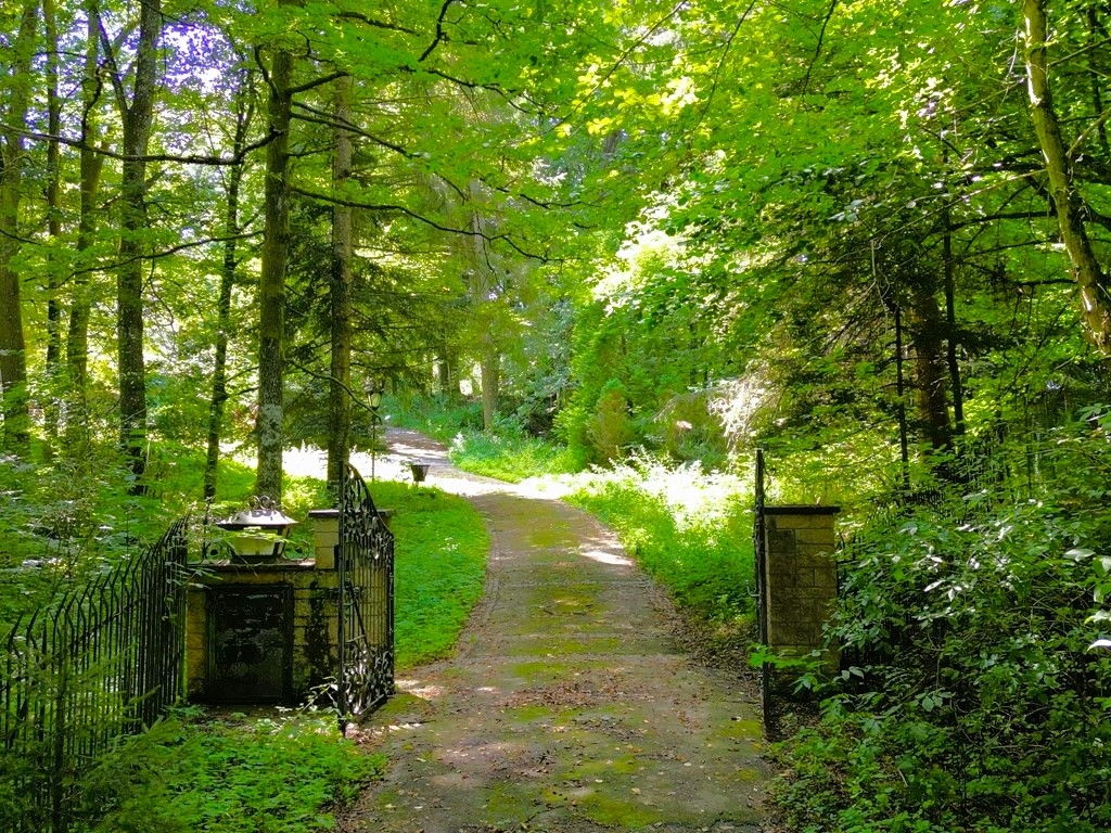 Der Außenbereich dieser Immobilie ist ebenso beeindruckend. Ein Pool lädt an warmen Tagen zum Schwimmen und Genießen ein, während das weitläufige Grundstück aktuell bewaldet ist und Ihnen Privatsphäre und Abgeschiedenheit garantiert. Die Randlage des Anwesens bietet Ihnen die perfekte Balance zwischen Abgeschiedenheit und Erreichbarkeit.