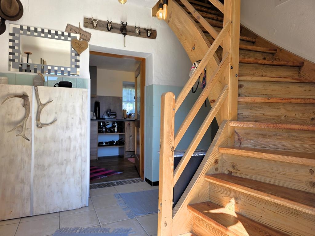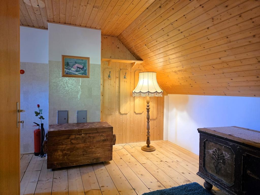 Das nach 1955 auf ein Bestand aufgebaute und liebevoll adaptierte Wohnhaus empfängt Sie mit warmer Ausstrahlung und einem besonderen Charakter. Zwei gemütliche Schlafzimmer, ein freundliches Wohnzimmer, eine einladende Küche und eine getäfelte Galerie schaffen Raum für Begegnung und Rückzug gleichermaßen. Das modern erneuerte Bad bietet den erwarteten Komfort, während eine kleine Kammer im Nebengebäude Sie in eine andere Zeit versetzt – ideal für ganz persönliche, besondere Momente.