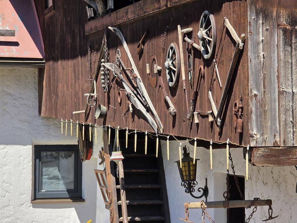 Das Nebengebäude erzählt seine eigene Geschichte: An der Fassade hängen alte Werkzeuge wie Kunstwerke aus vergangenen Tagen – ein dekorativer Gruß an die Tradition. Eine Garage und mehrere Stellplätze bieten Platz für Fahrzeuge und Gäste. Es birgt eine Werkstatt für Ihre Hobbies und hat ausreichend Stauraum für Dinge, die Ihnen wichtig sind.