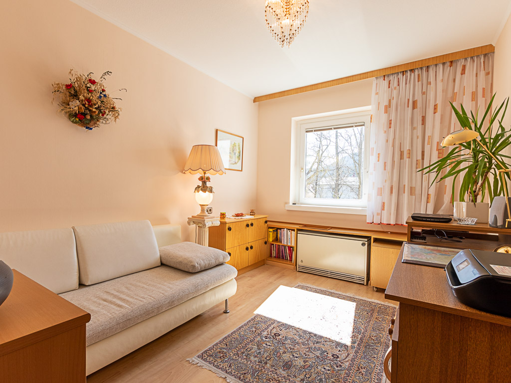 Auf insgesamt 4 Zimmern lässt sich auf ca. 90 m2 wunderbar wohnen und erholen. 2 der 4 Zimmer und die Küche schauen nach Süden, wo geschützt durch eine sichere Mauer, die Schwarza sanft vorbeizieht.