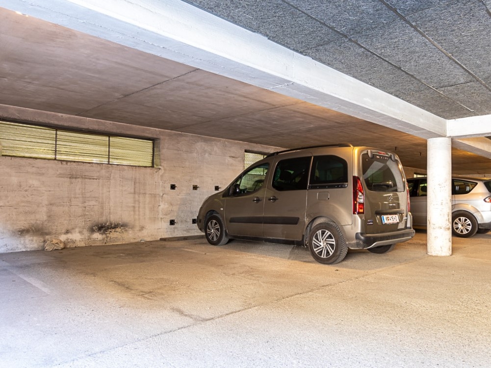 Die Tiefgarage, im Preis inbegriffen, ist ebenerdig, breit und gut einsehbar.