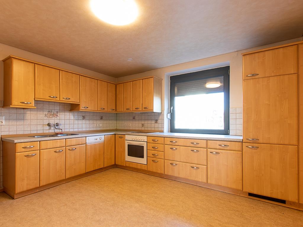 Eingerichtet ist momentan nur die Küche im Erdgeschoß. Für eine zweite Küche im OG sind Leitungen vorhanden.