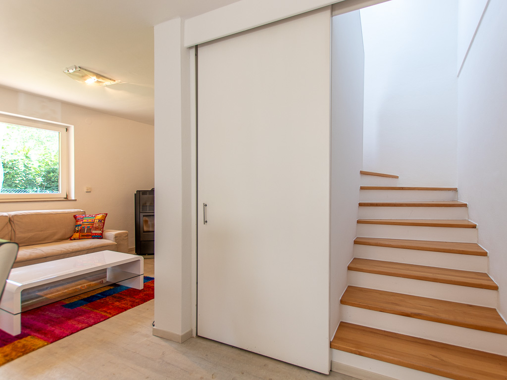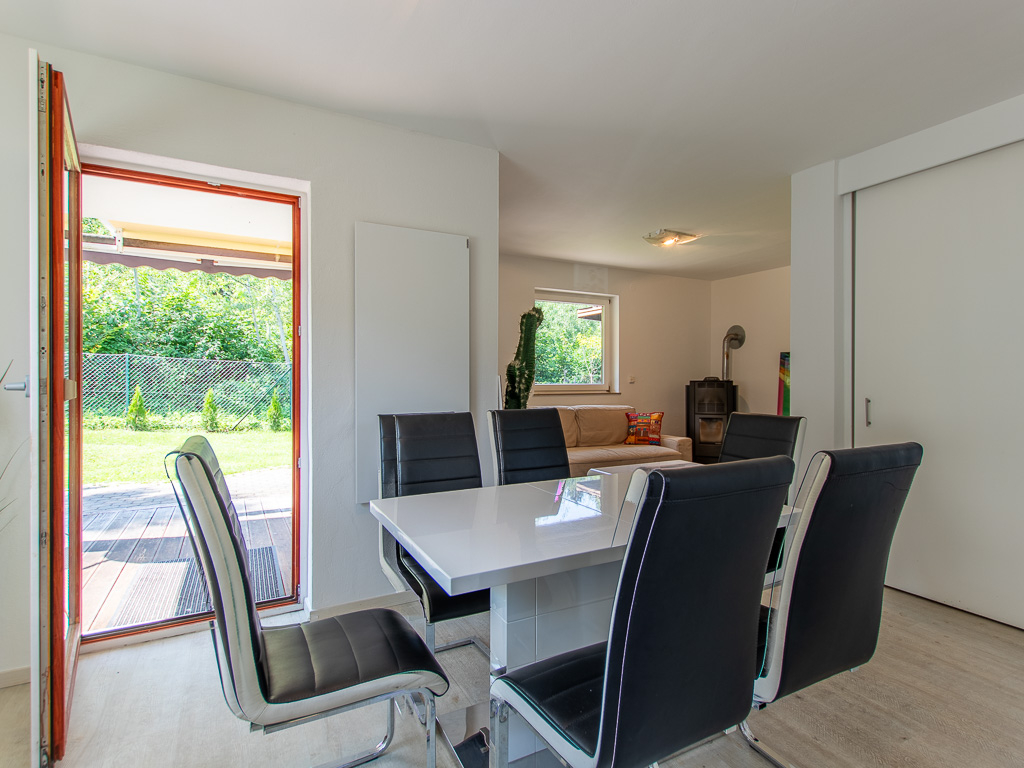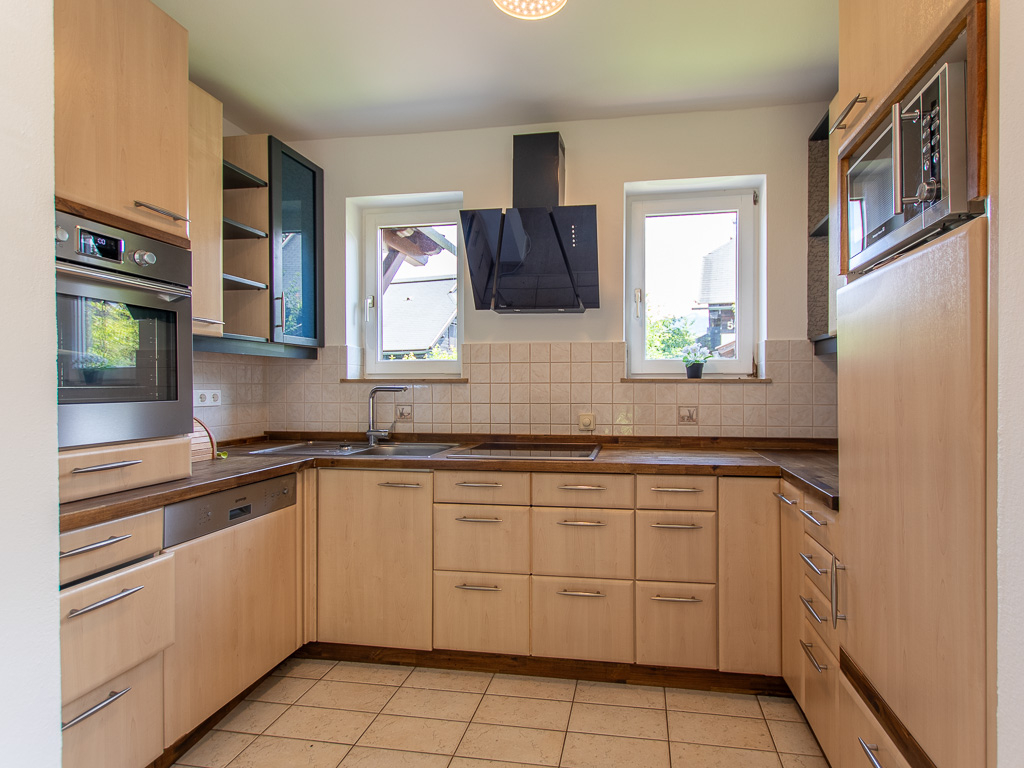 EG: Diele, offene Küche mit allen Geräten, gemütliche Essecke, Wohnzimmer mit Kaminofen und Ausgang zur Terrasse, WC.