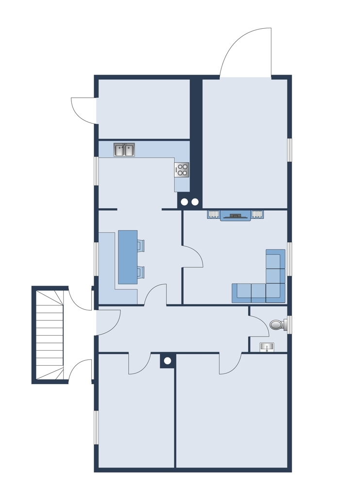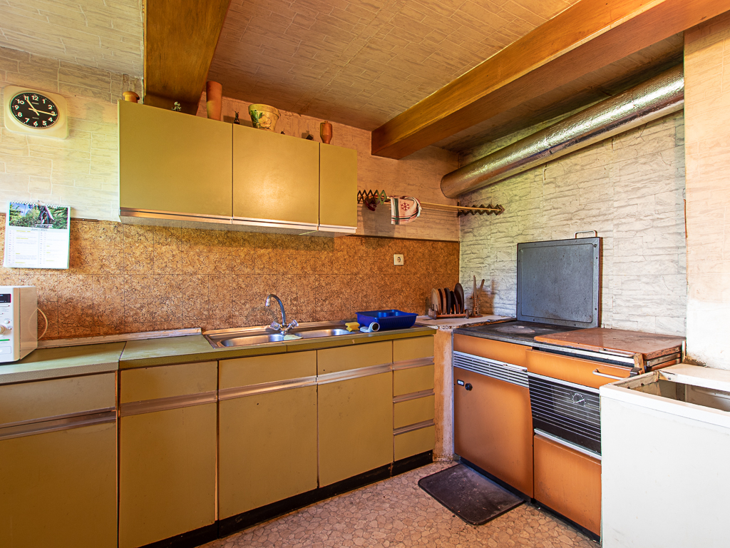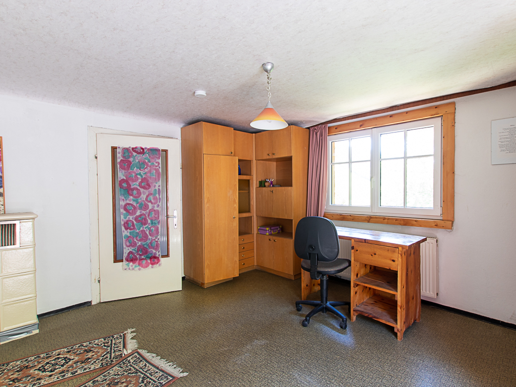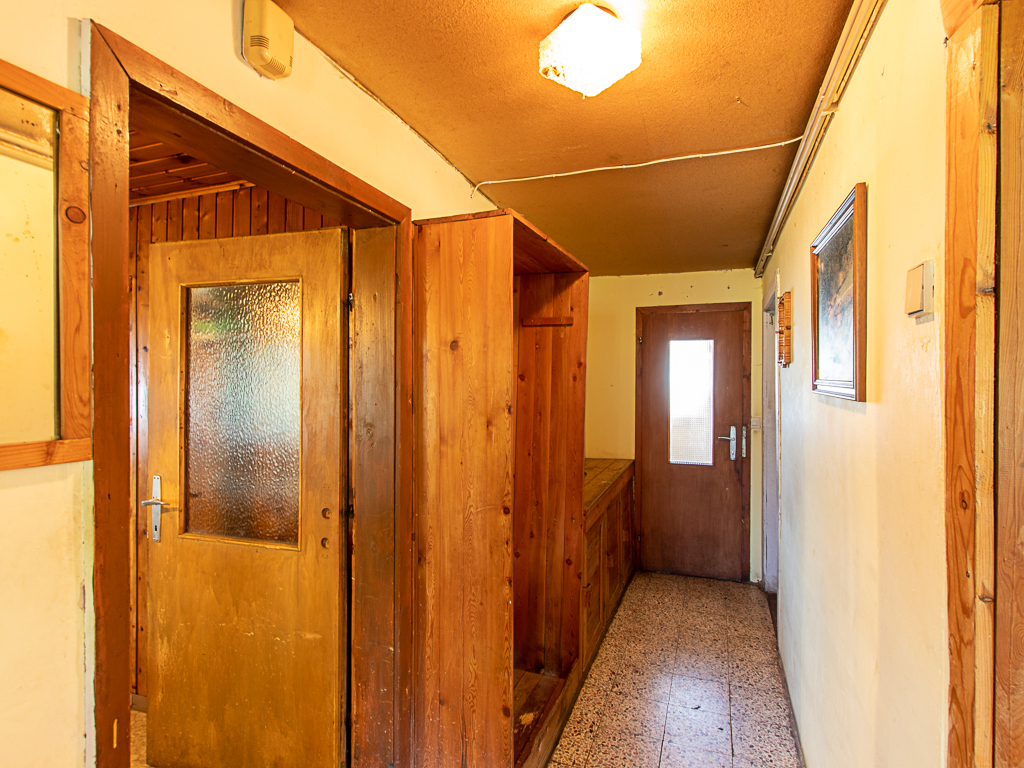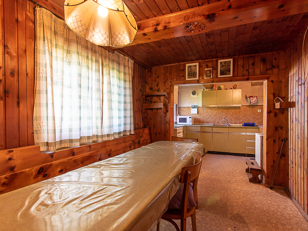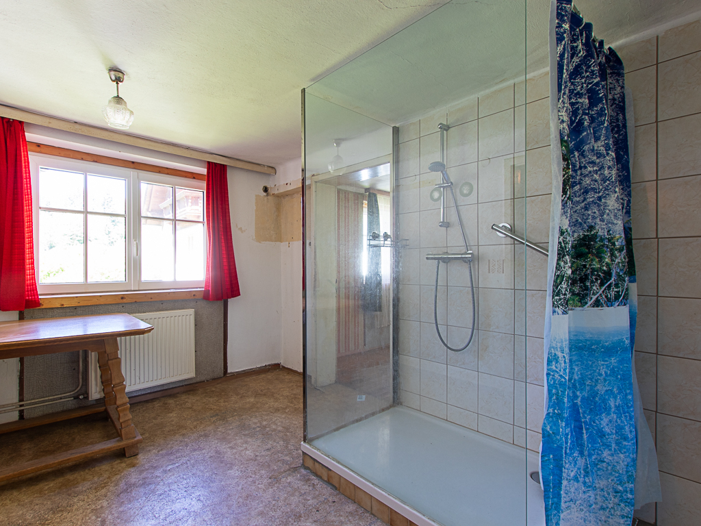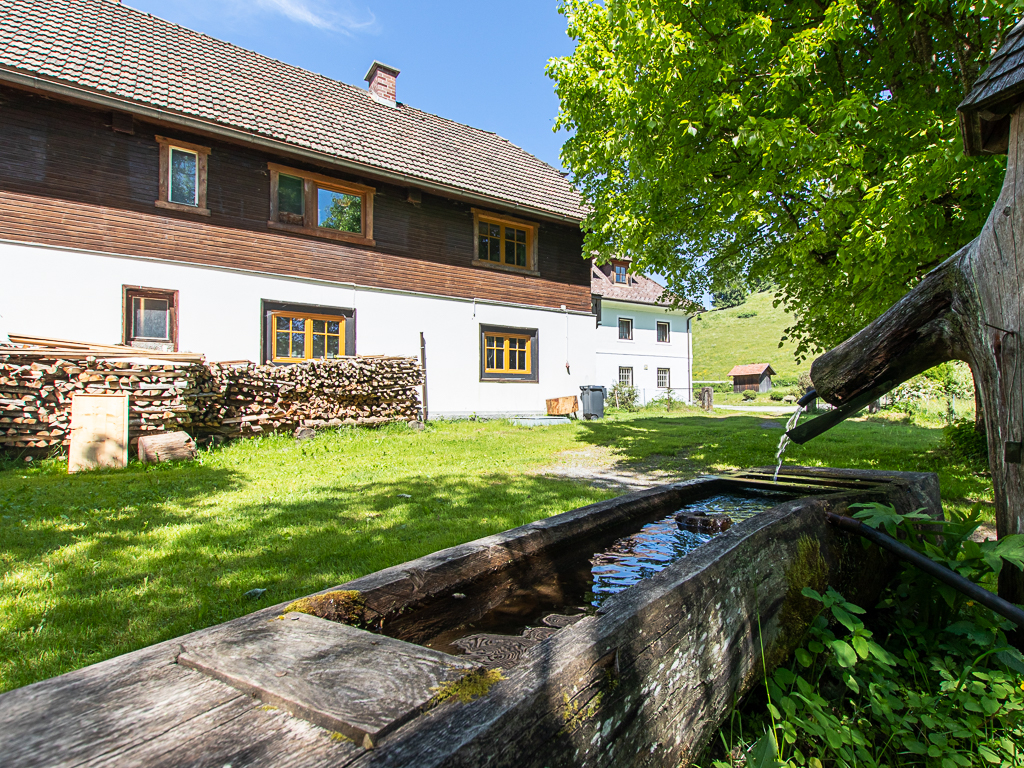 Dieses 2-geschoßige Haus samt Scheune und Carport war ursprünglich ein Nebengebäude und wurde später zum Haus ausgebaut. Dementsprechend schlicht ist die Bausubstanz, teils Ziegel, teils Holzriegel. Der alpine Charme ist in jeder Ebene zu finden. Es gibt ein Jagdzimmer, eine Stube, eine sehr einfache Küche, eine Selch und weitere Räume. Einzelne Modernisierungen wurden umgesetzt. So wurde 1990 eine Zentralheizung eingebaut, der Brenner 2006 erneuert. Ein neuer E-Verteiler sowie eine Dusche wurden vor ca. 15 Jahren umgesetzt.