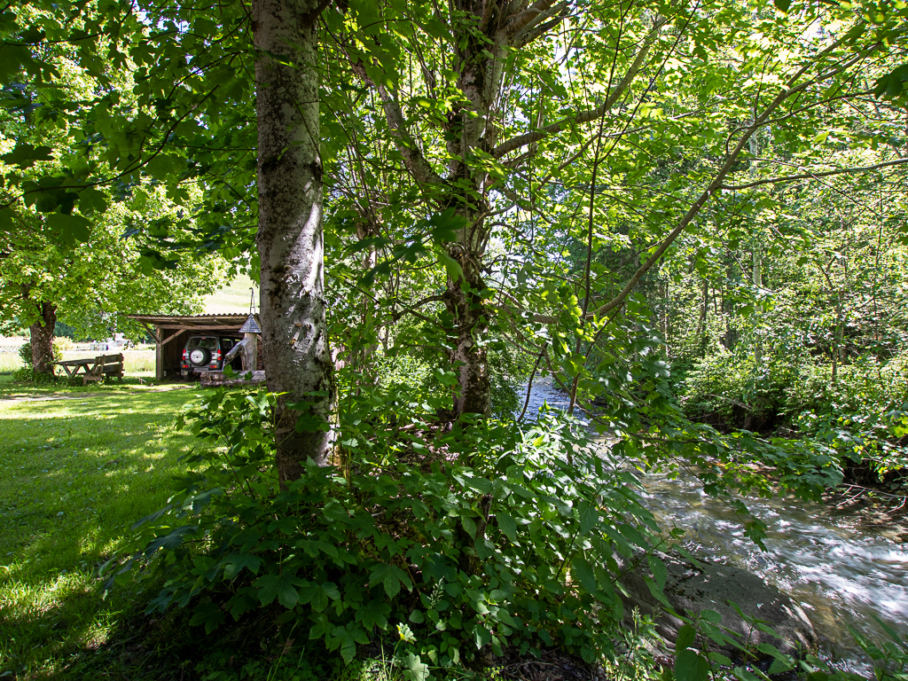 Es liegt direkt an der Metnitz etwas außerhalb des Ortes neben einem ehemaligen Gasthaus. Die Komposition mit Brunnen (eigene Quelle) und Bäumen ist sehr einladend.