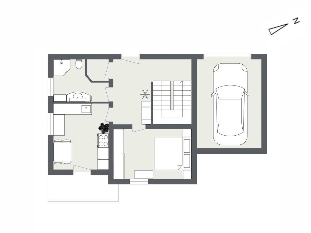 Die Garage bietet Platz für Ihr Fahrzeug sowie zusätzlichen Stauraum und rundet das Angebot funktional ab.