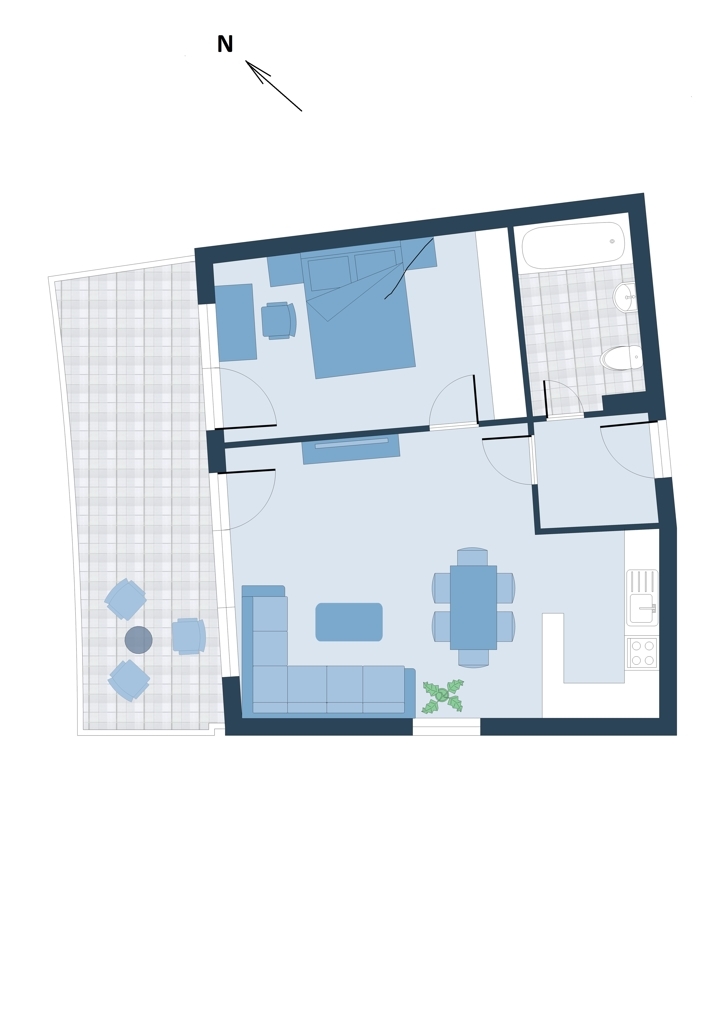 Sehr freundliche und helle 2-Zimmer-Wohnung in einem modernen Bau im 2. Stock mit Lift. Sie schauen sowohl vom Wohnzimmer als auch vom Schlafzimmer direkt ins Grüne. Zudem genießen Sie hier die Vorzüger einer sehr großzügigen Terrasse.