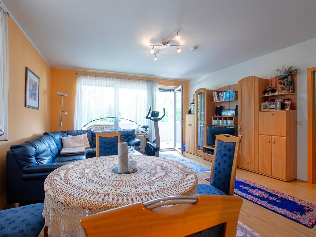 Das große Wohn-Ess-Zimmer ist ausgesprochen hell durch die vielen Fenster und die Terrassentür. Ein rundum sehr freundlicher Lebensraum.