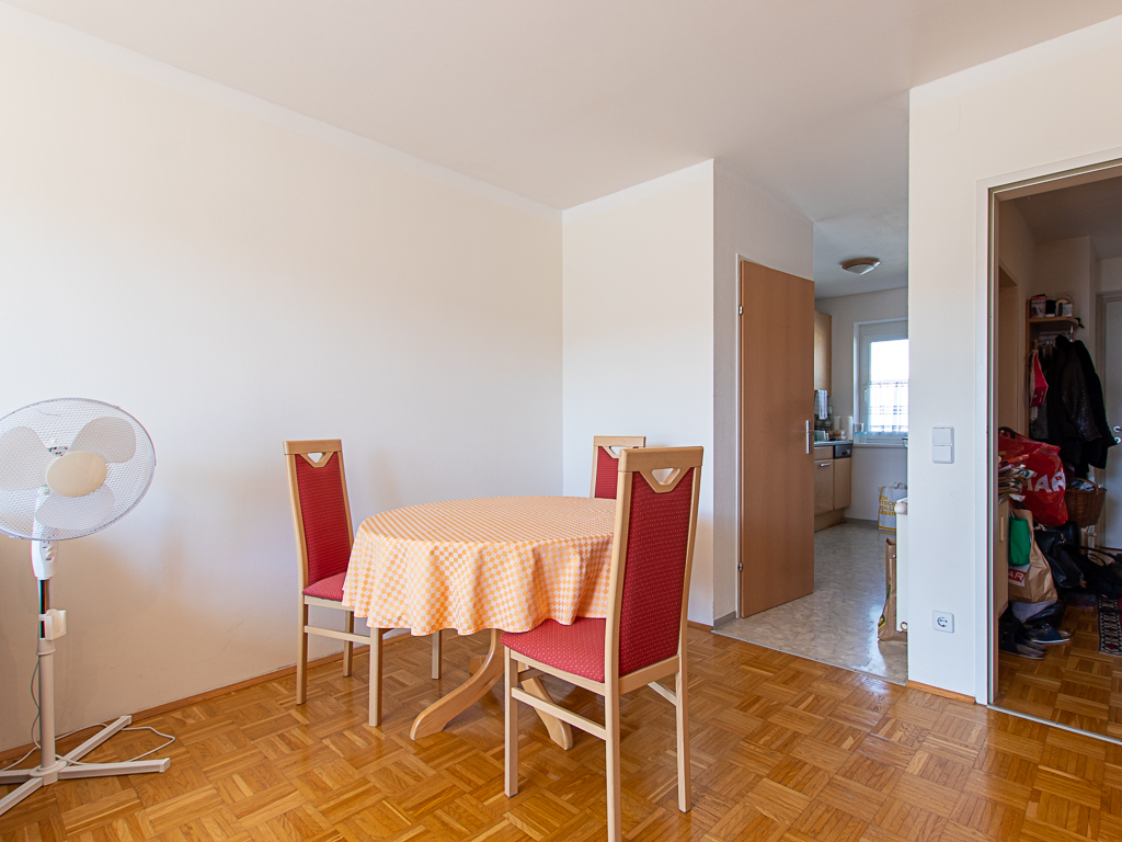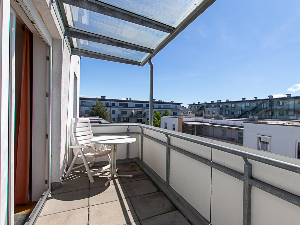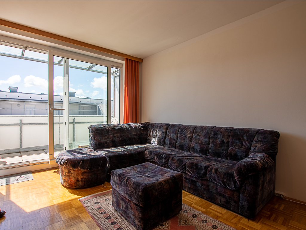Übers Wohnzimmer kommt man direkt auf den ruhigen 6m2 großen Balkon.