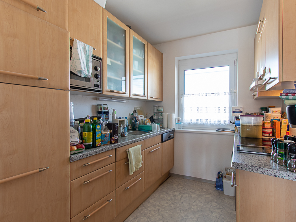 Die Küche ist mit dem Wohnzimmer verbunden und wird durch eine Speis ergänzt.