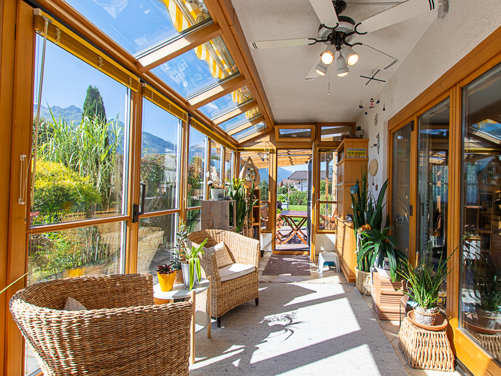 Erdgeschoss: Vorhaus, Garderobe, Büro/Gästezimmer, gr Wohn-Essbereich mit Kachelofen und neuwertiger Küche plus Wintergarten, Garage