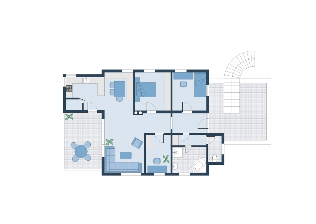 Das Herzstück dieser Wohnung ist das offene Wohn-Ess-Zimmer mit direkter Verbindung zur Küche und Ausgang auf die überdachte Terrasse. Eine weitere Terrasse im Osten lädt zum Frühstücken in der Morgensonne ein. Das helle Bad, ein getrenntes WC und 3 Zimmer runden das exklusive Angebot ab. Es wird für Sie leicht sein, sich hier wohlzufühlen.