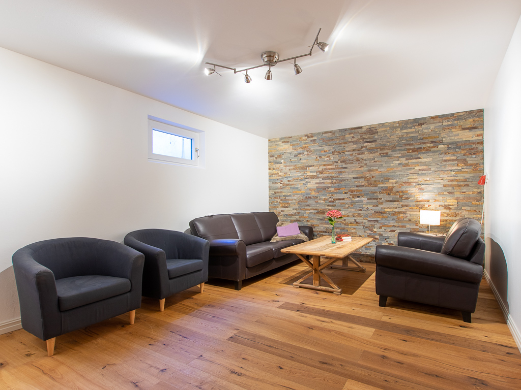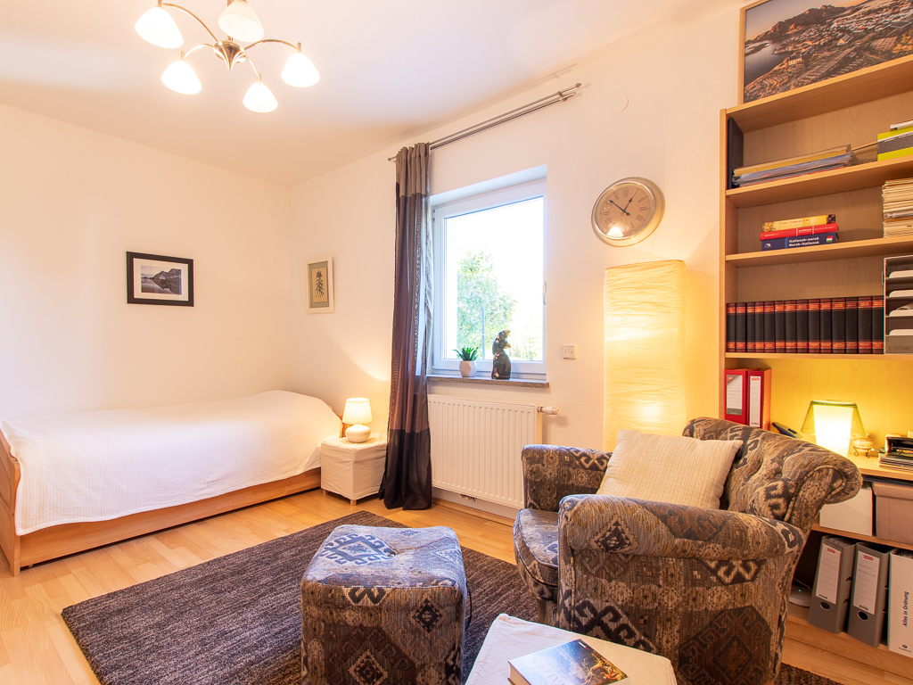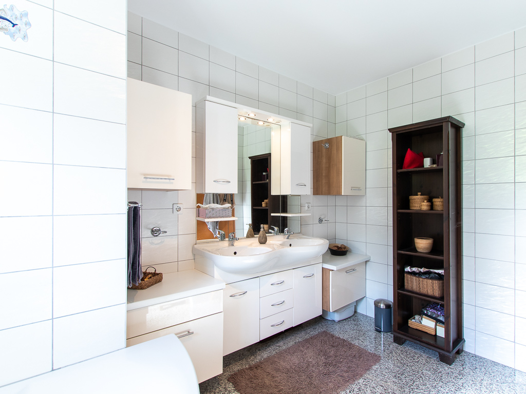 Das Herzstück dieser Wohnung ist das offene Wohn-Ess-Zimmer mit direkter Verbindung zur Küche und Ausgang auf die überdachte Terrasse. Das geräumige Bad, ein weiteres Bad im Keller, das helle Schlafzimmer mit dem eigenen Balkon und ein Gästezimmer runden das Angebot ab. Es wird für Sie leicht sein, sich hier wohlzufühlen.