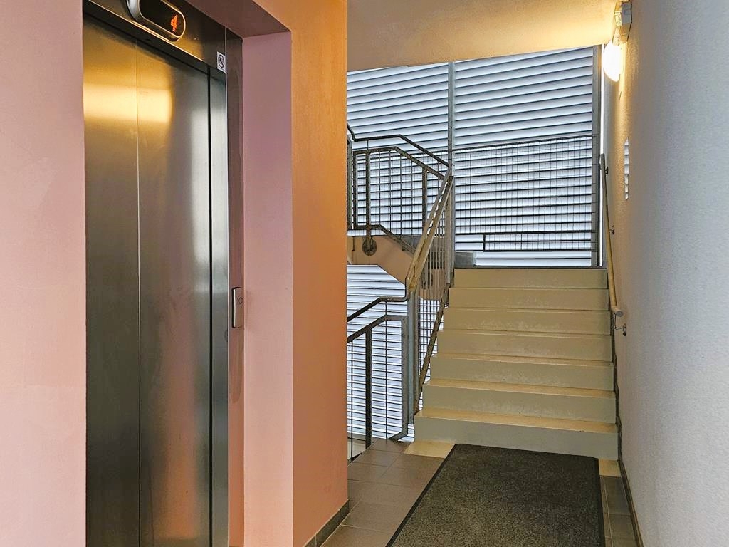 Moderner Massivbau mit zeitgemäßer Bautechnik und Personenaufzug.
