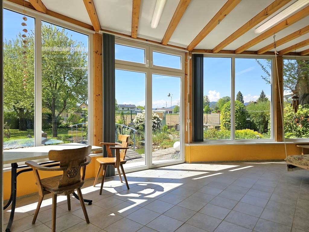 Das massiv gebaute Erdgeschoß und der Holzriegelbau im Obergeschoß sind aus 1980. Der über die gesamte Westseite gehende 2-geschoßige Wintergarten aus 2010 in moderem Holzriegel und feiner Handarbeit. 2-fach verglaste Fenster im ganzen Haus.
