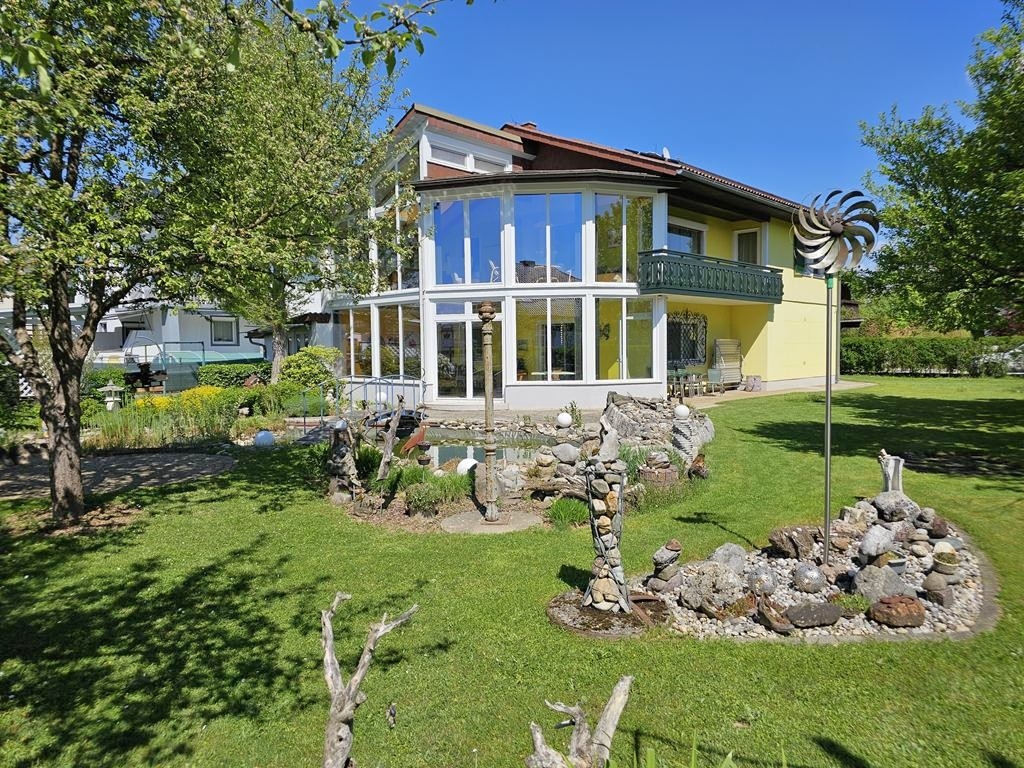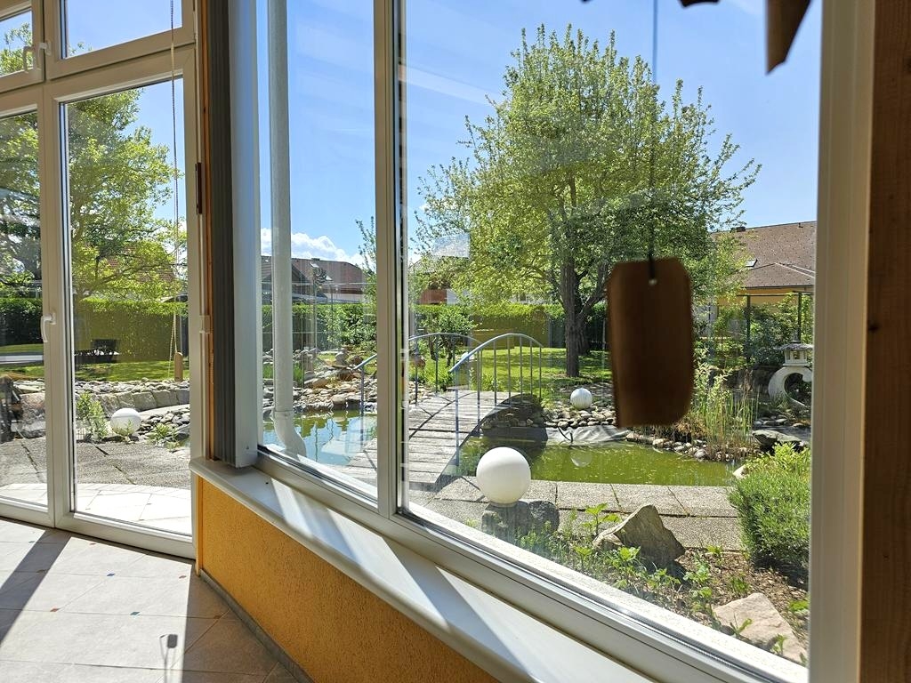 Dieses Haus ist mehr als ein Zuhause – es ist ein Lebensgefühl. Der nach FengShui gestaltete Garten entfaltet seine ganze Kraft auf Anhieb: sanfte Wege führen durch blühende Beete, eine elegante Teichbrücke verbindet die Bereiche wie ein feines Band. Jeder Schritt im Garten fühlt sich an wie eine kleine Reise zu sich selbst.