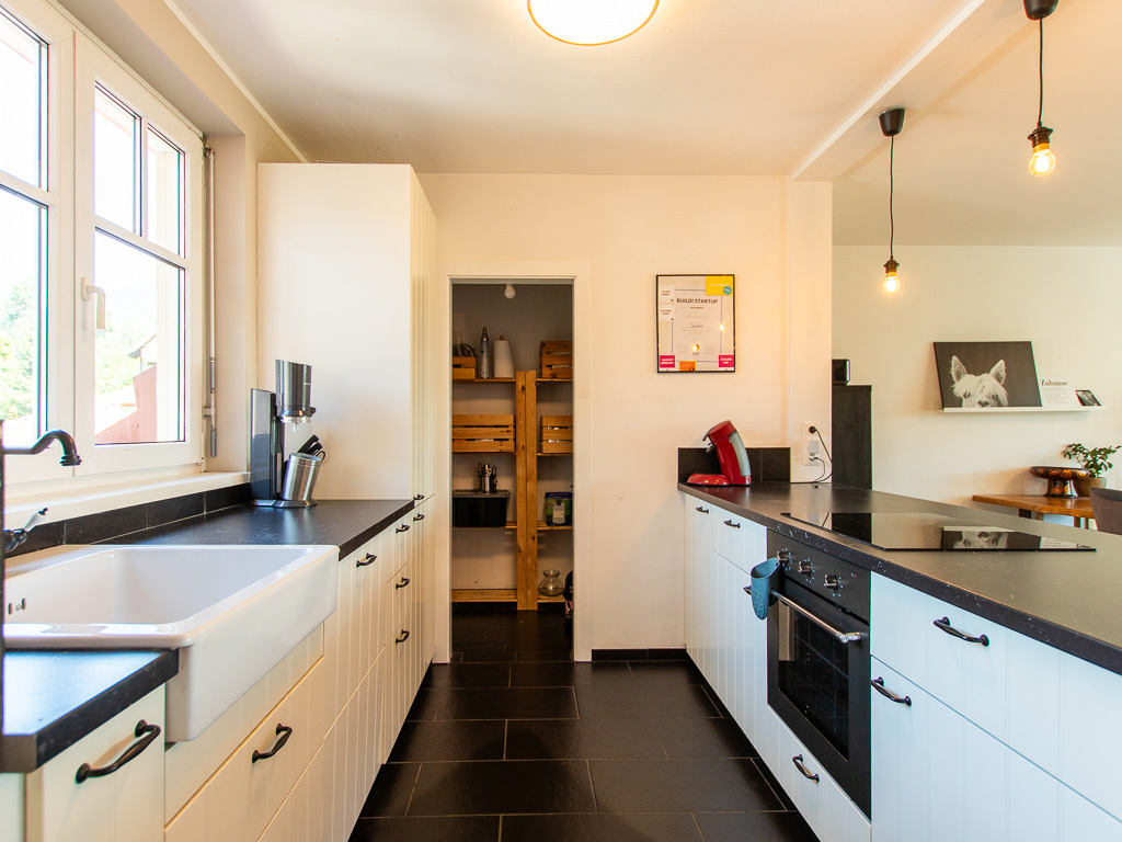 Die Küche ist modern gestaltet und mit hochwertigen Geräten ausgestattet. Hier können Sie Ihre kulinarischen Fähigkeiten entfalten und köstliche Mahlzeiten zubereiten. Der Essbereich in der Nähe der Küche bietet einen idealen Platz, um Gäste zu empfangen oder einfach nur um in Ruhe zu speisen.