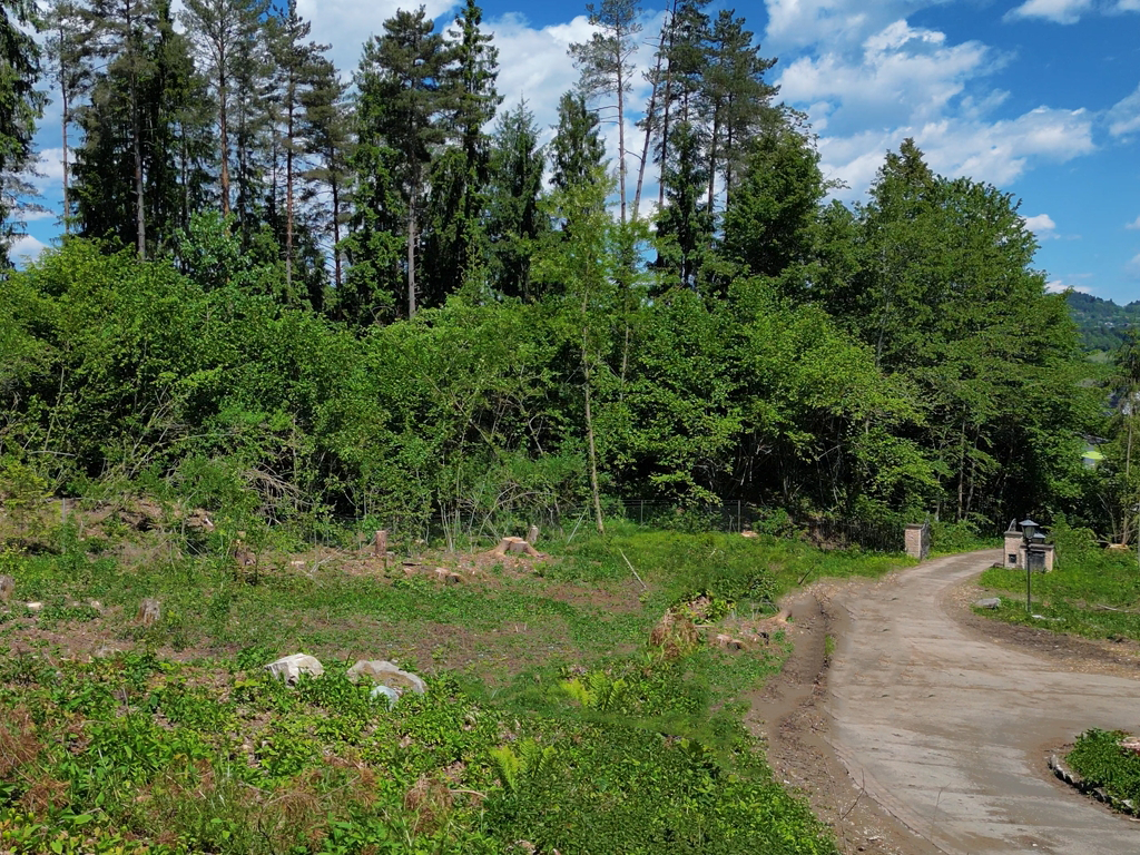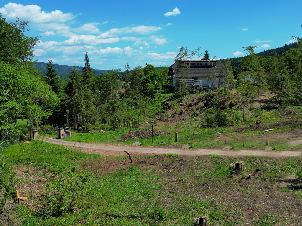 Im Norden schließt ein Waldstück an, westlich öffnet sich eine freie Wiese – diese kann bei Interesse als Gartenerweiterung miterworben werden.