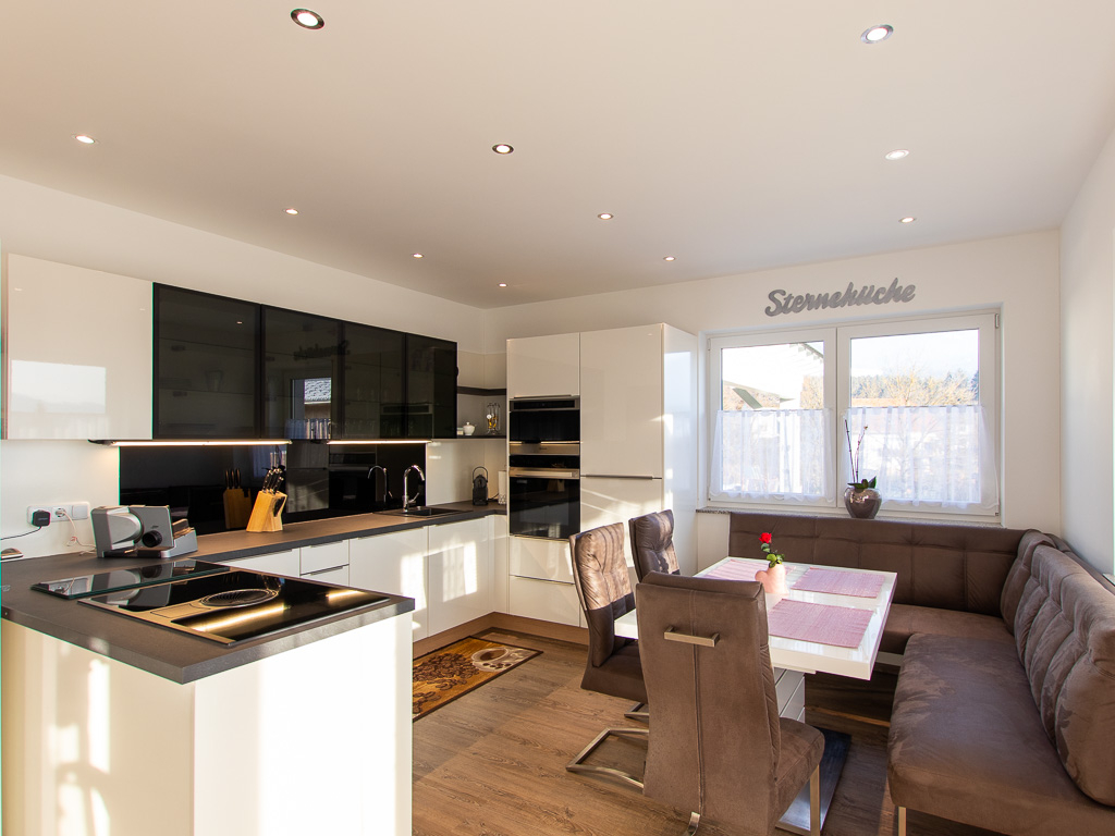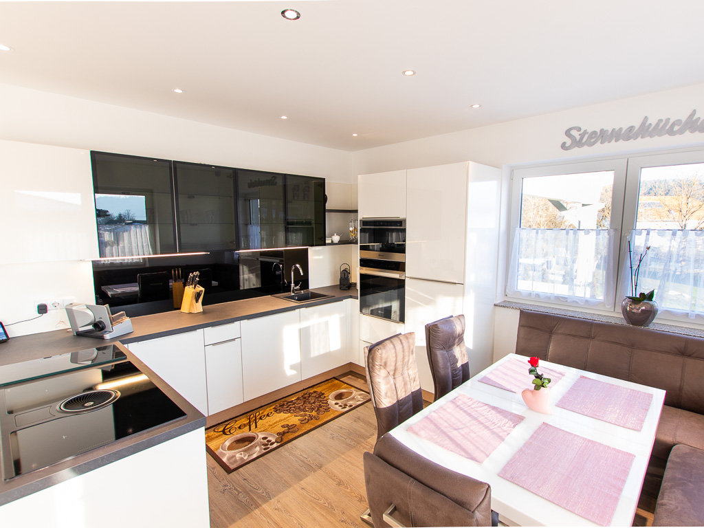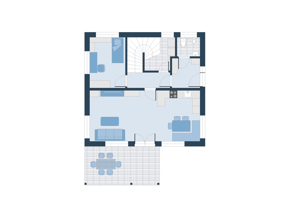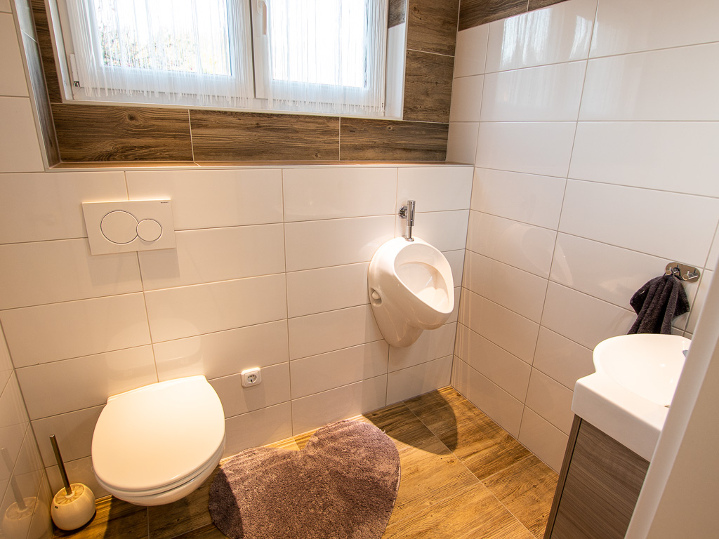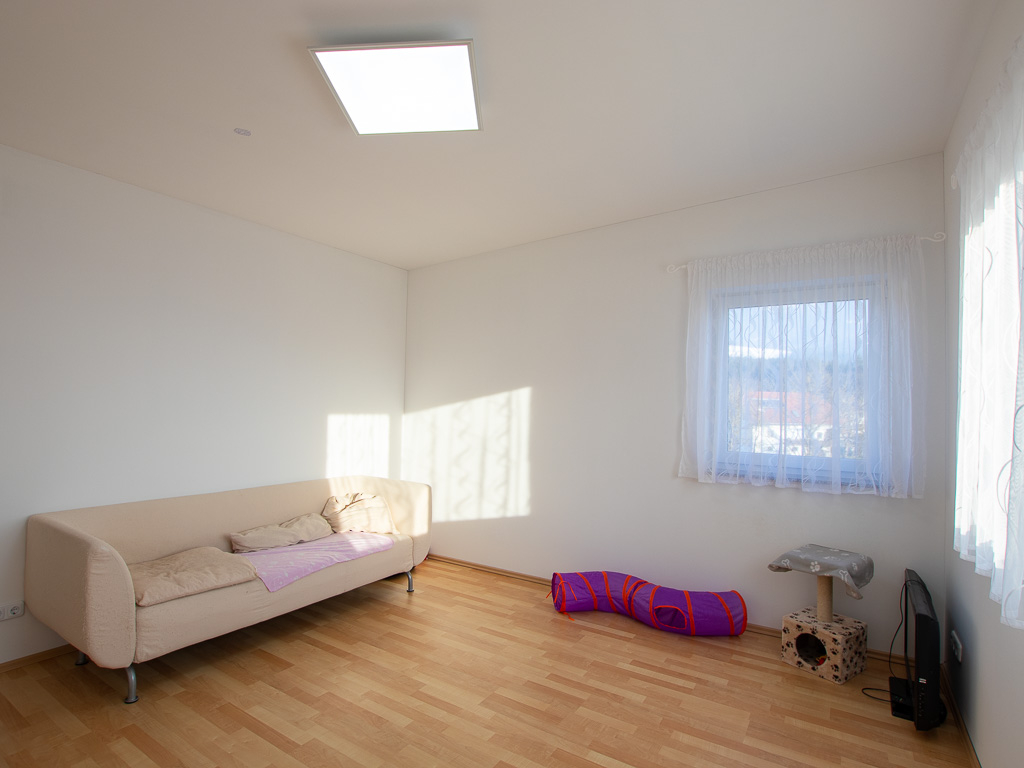 Im Untergeschoß erwartet Sie eine südlich ausgerichtete Wohnküche mit einer Größe von rund 35 m2 und direktem Zugang zur überdachten Terrasse - die perfekte Lage zum Entspannen und Genießen. Darüber hinaus finden Sie ein separates Zimmer, das derzeit als Büro genutzt wird, ein separates WC sowie einen Technikraum.
