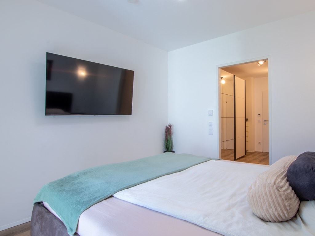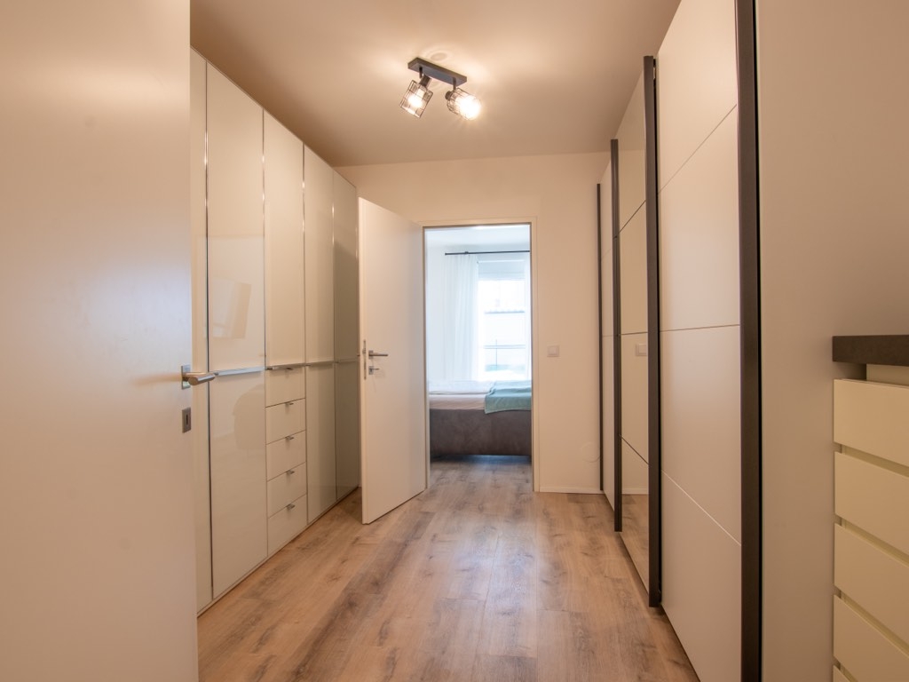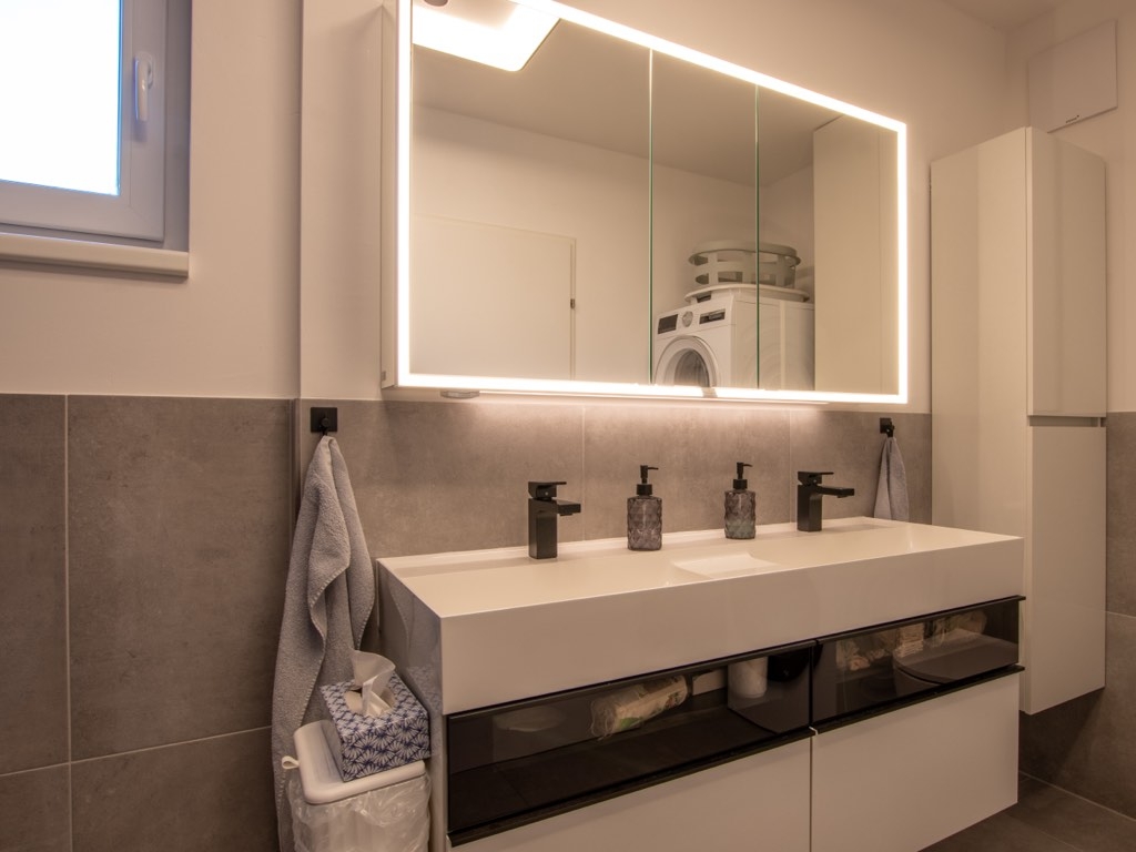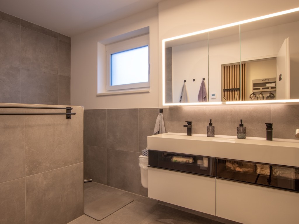 Das moderne Badezimmer begeistert mit einer breiten Walk-In-Dusche samt beheizter Sitzbank, einem Doppelwaschbecken und ausgesuchten Materialien – ein Ort zur täglichen Entspannung und Einstimmung auf den Tag. Technisch überzeugt die Wohnung durch 3-fach-Verglasung, elektrische Rollläden, Fliegengitter, Lichtdimmung und Einzelraumsteuerung der Heizung – alles für ein angenehmes Wohnklima auf modernstem Niveau.