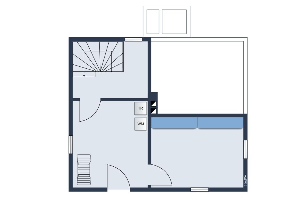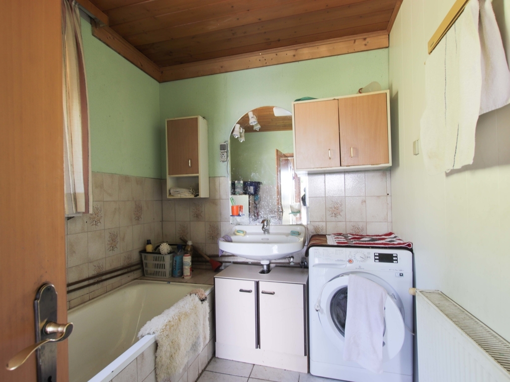 Das Erdgeschoss besteht aus Badezimmer, Waschraum, separates WC, Essküche und Schlafzimmer. Es wird von einer netten älteren Dame bewohnt die ein aktives Wohnrecht hat.