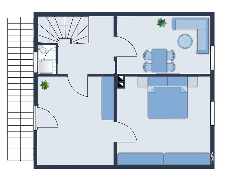 Der erste Stock gehört vollkommen Ihnen. Bestehend aus einem kleinen Bad/Wc, Wohnzimmer, Schlafzimmer und Essküch mit Balkonzugang. Auf dem Balkon haben Sie eine herrliche Aussicht.