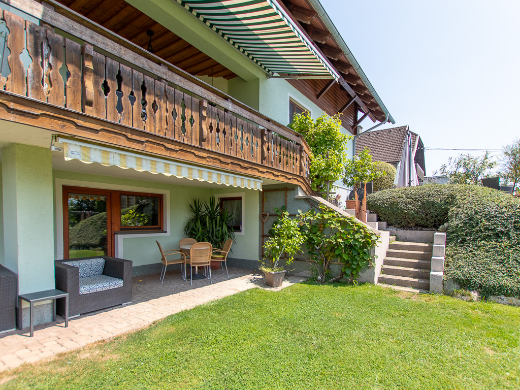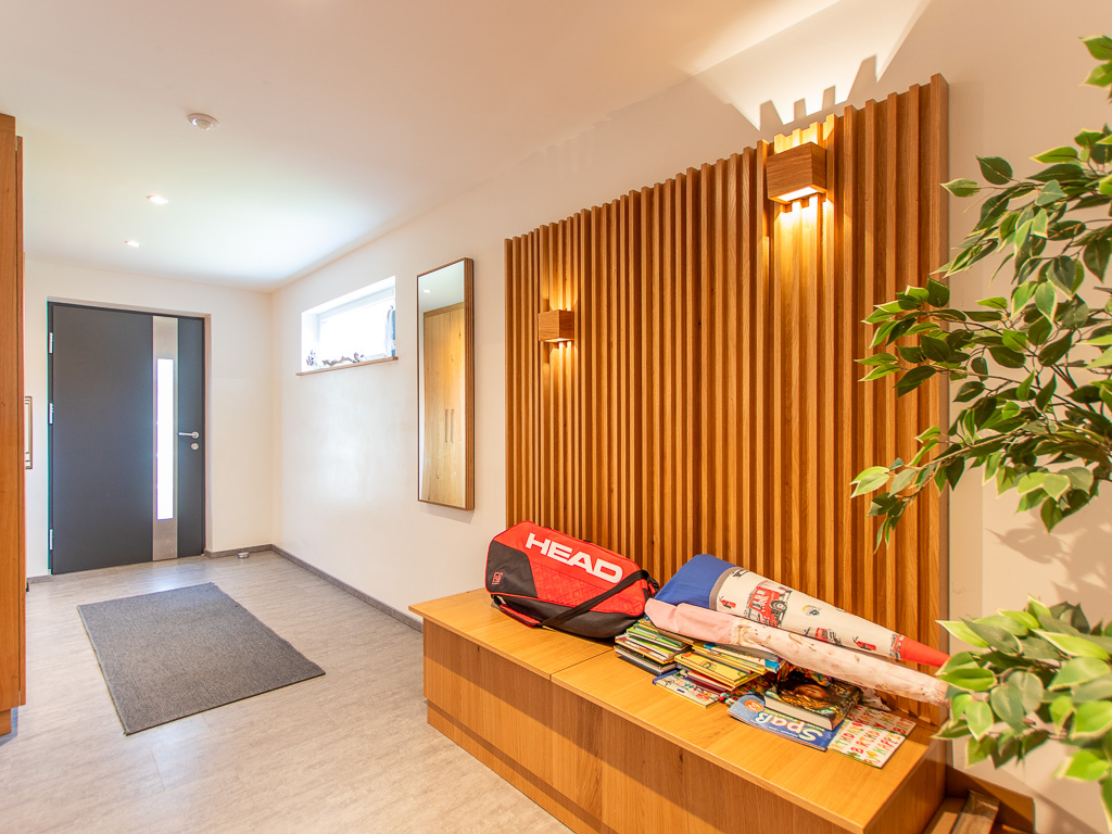 EG: Eingangsbereich, offene Küche mit gemütlicher Essecke, Wohnzimmer mit Kachelofen und Ausgang zur Terrasse, Bad, WC