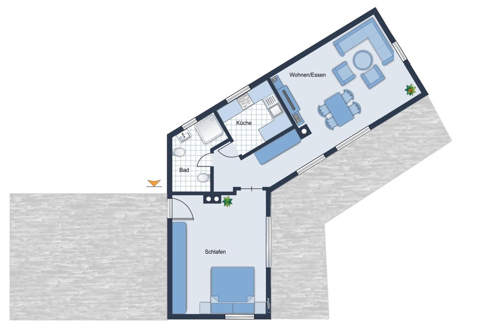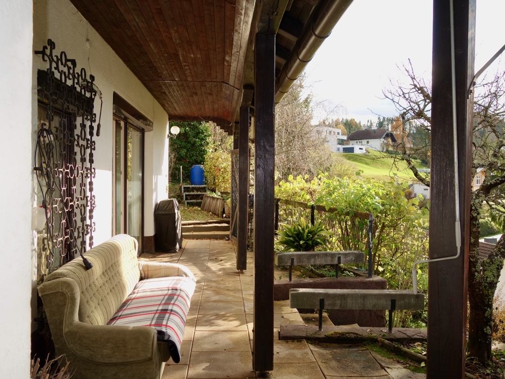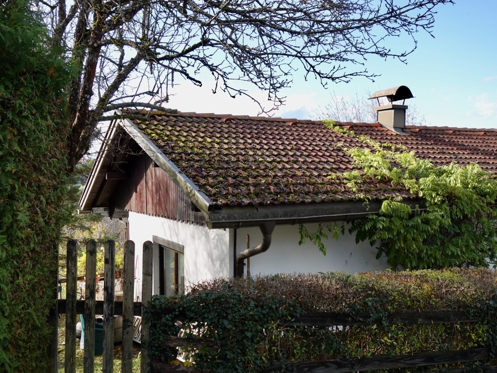 Erbaut wurde das Haus 1975 als Ferienhaus. Damit der Ausblick und die Sonne vollends zur Geltung kommen sind die Terrasse als auch die beiden Zimmer nach Süd / Westen ausgerichtet.