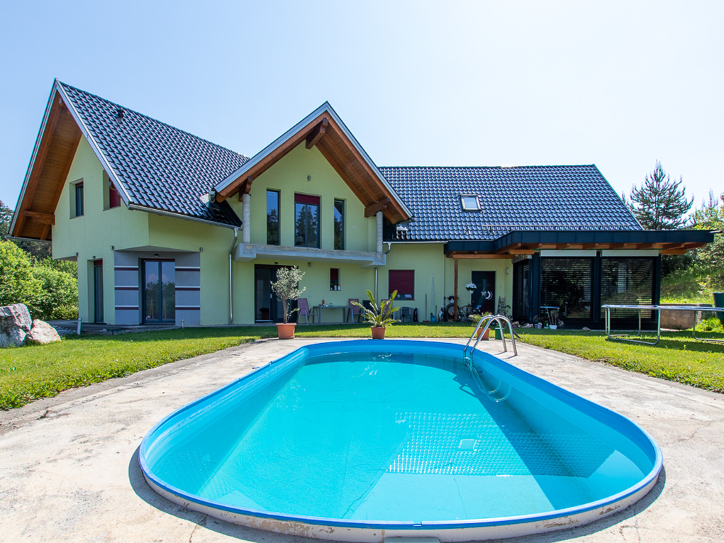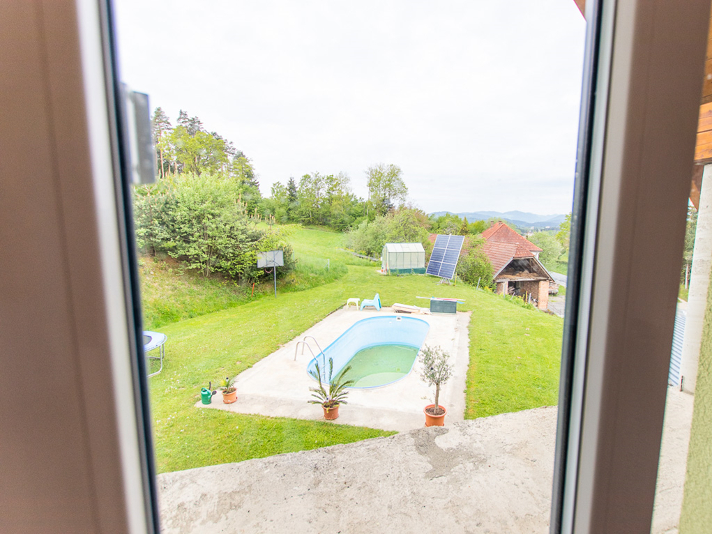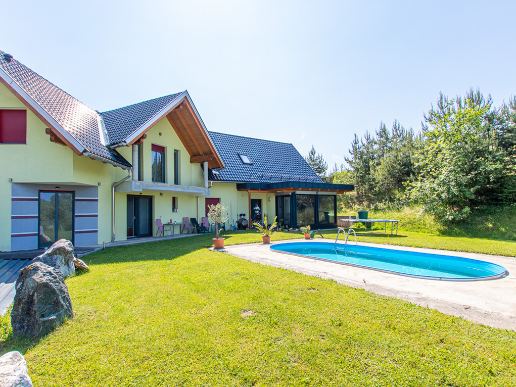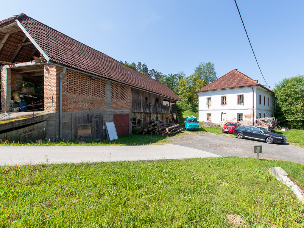Das Areal umfasst ca. 3,7 ha Landwirtschaftliche Flächen und ca- 1,7 ha Wald, einen Swimmingpool, ein Gewächshaus, einen Fischteich mit Hütte, eine Garage und ein großes Carport.
