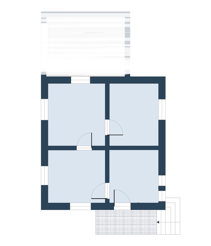 Das Haus verfügt über 3 Schlafzimmer. Das größte Schlafzimmer ist im Erdgeschoss und nach Norden ausgerichtet, die beiden weiteren sind im Obergeschoss. Ersteres ist ein Durchgangszimmer (auch gut als Büro geeignet) zum zweiten Schlafzimmer.
