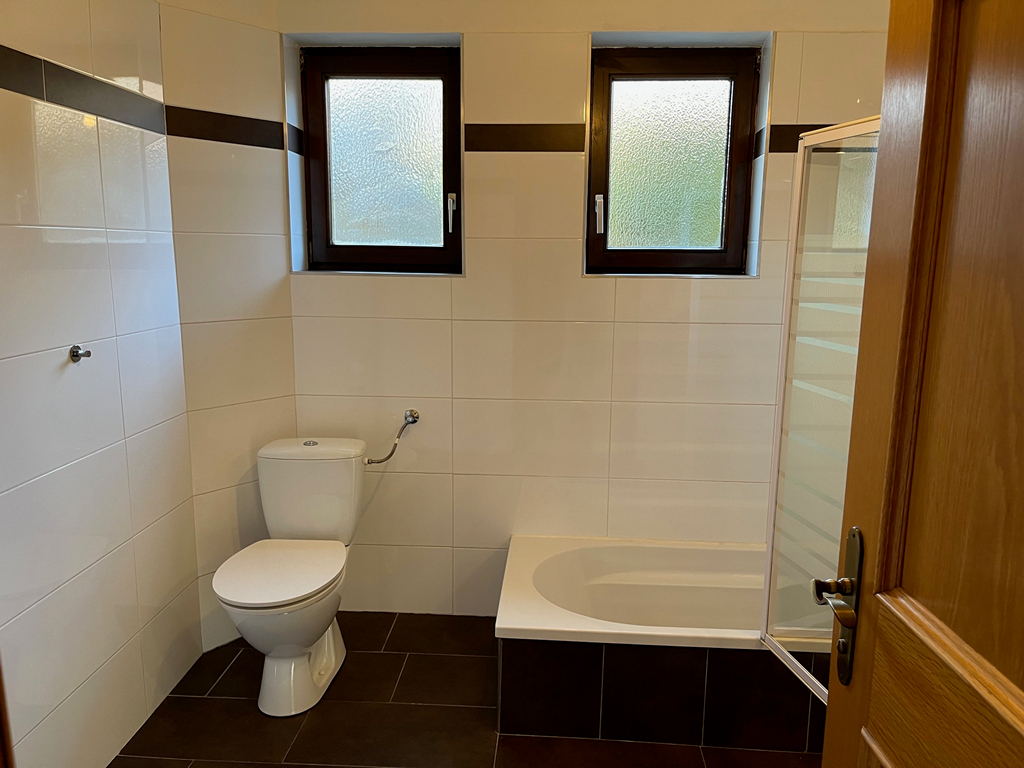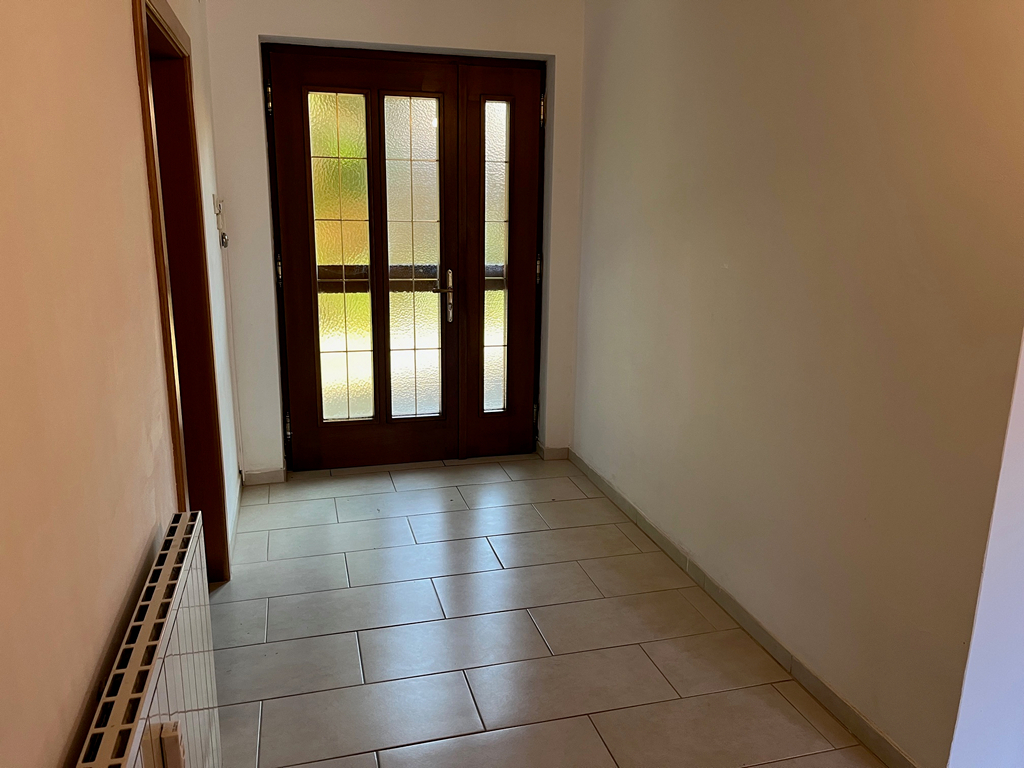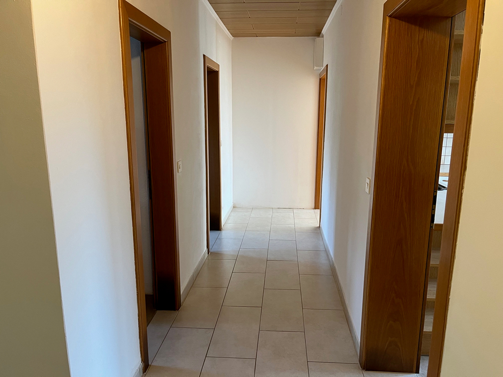 Große Diele, Küche mit Essecke, Wohnzimmer mit Kaminofen, zwei Schlafzimmer, Bad, WC, Speis.