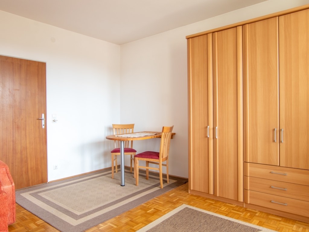Der helle Wohnraum bietet ein kompaktes aber durchaus Raumkonzept. Besonders hervorzuheben ist der rund 6 m² große Balkon nach Westen, der einen wunderschönen Blick auf die umliegenden Bergwelt inklusive Pyramidenkogel schenkt. Hier ist es für jeden möglich, nach einem langen Tag die Seele baumeln zu lassen. Ein Tiefgaragenplatz ist mit im Angebot dabei.
