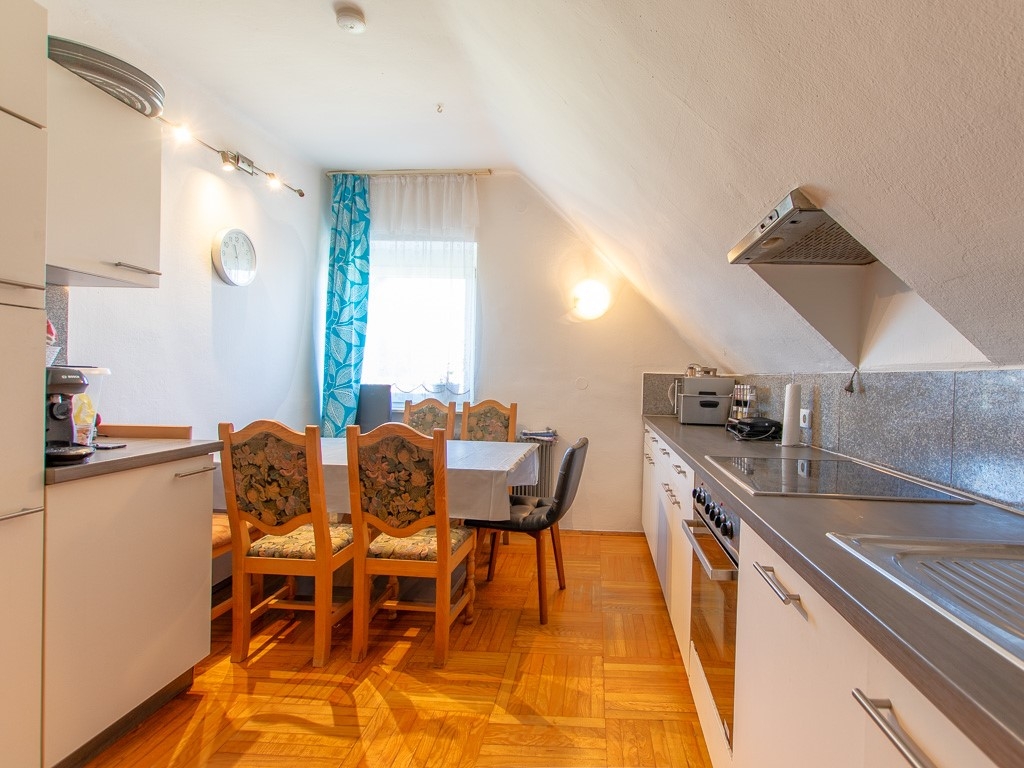 Die Küche ist mit allem Wesentlichen ausgestattet. Die Beheizung erfolgt zentral, auch das Warmwasser. Das Bad hat eine Dusche.