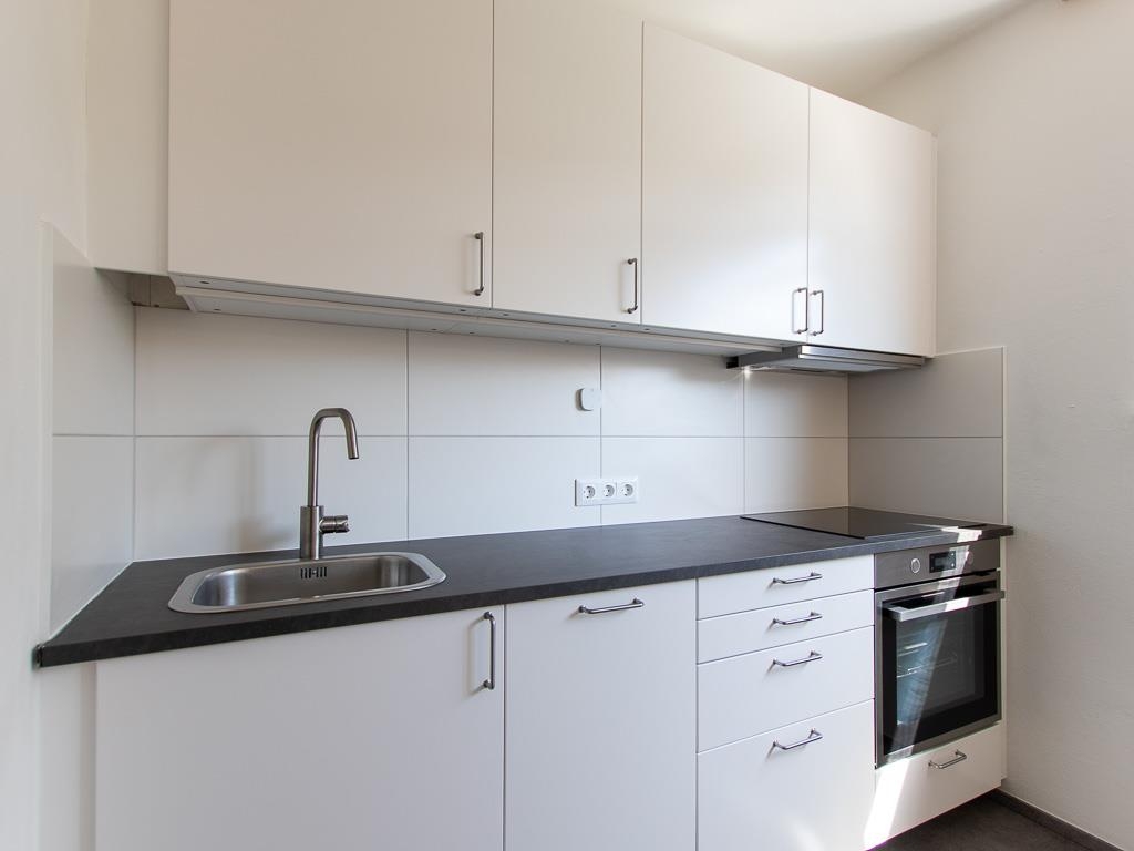 Die Küche ist mit einer neuen Küchenzeile ausgestattet.