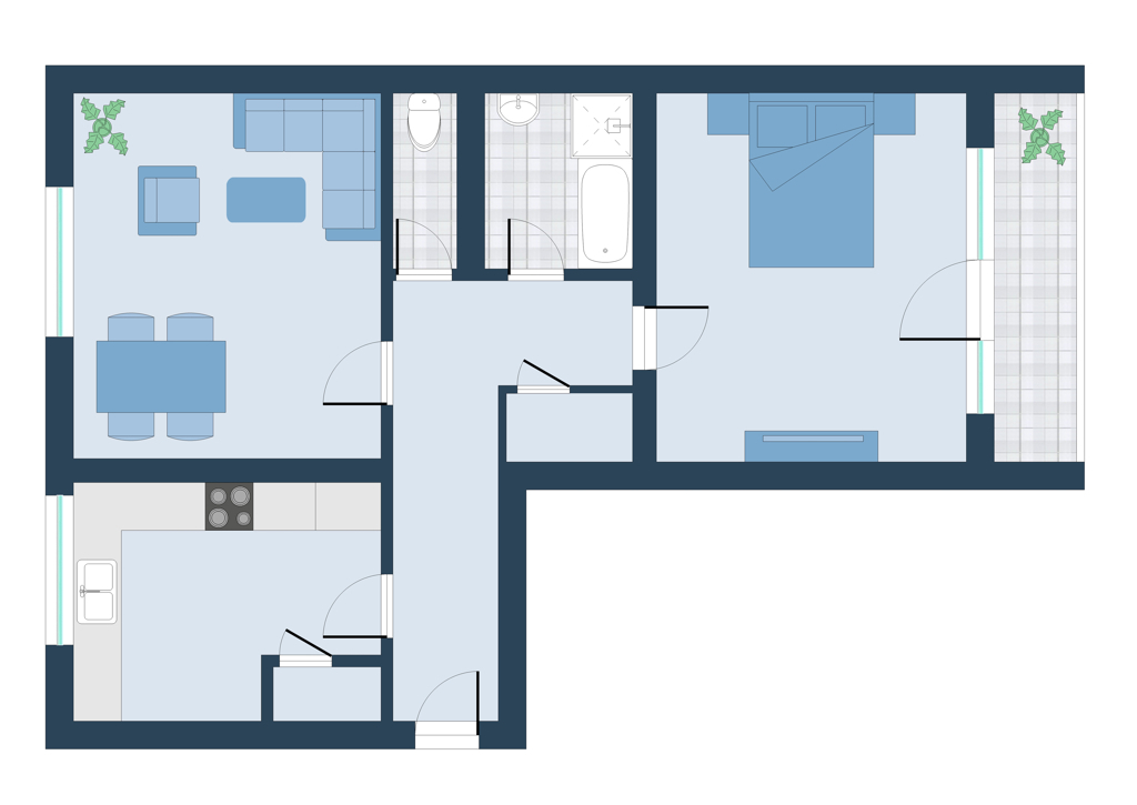 Ein weiterer Raum und die Küche sind nach Westen situiert.